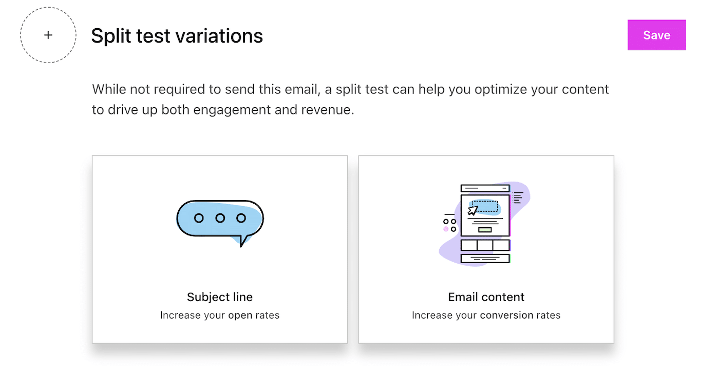 You can run split tests on several different aspects of the email from the subject line to design, content, and more.
