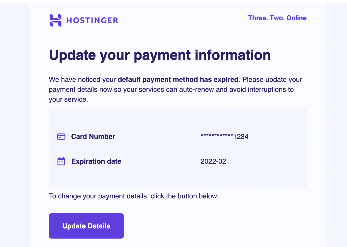 Rather than simply prompting the user to update their card details, the email clearly states the benefits of updating (avoiding interruptions to service.)