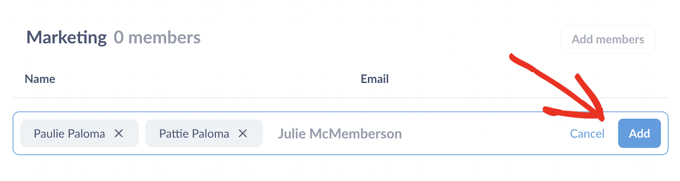 Enter the names of the users you want to add to the group and click the Add button.