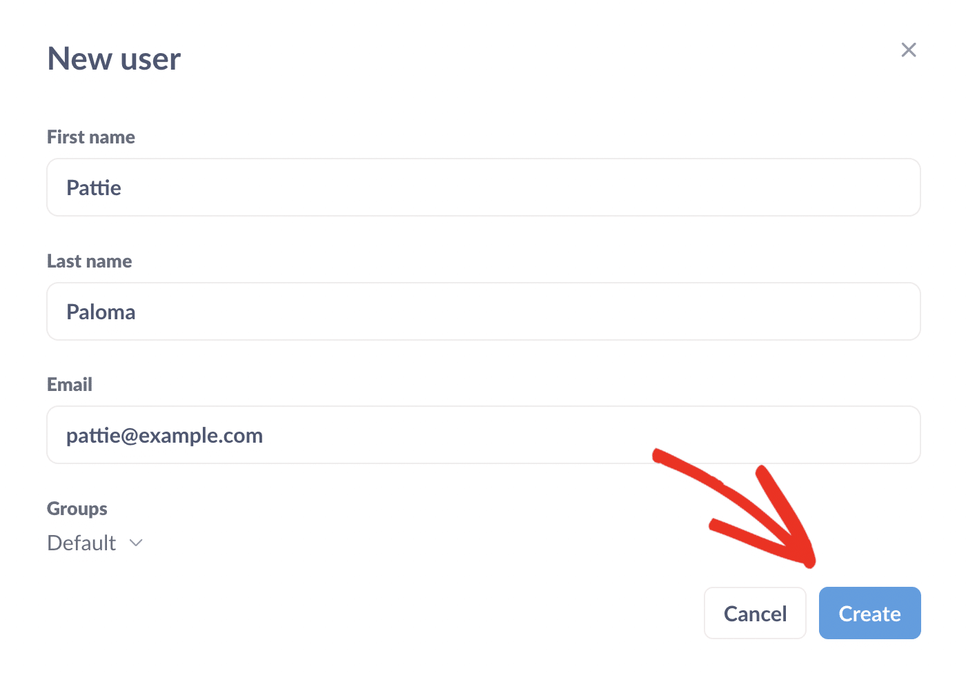 Fill out the details of the team member you want to invite and click the Create button.