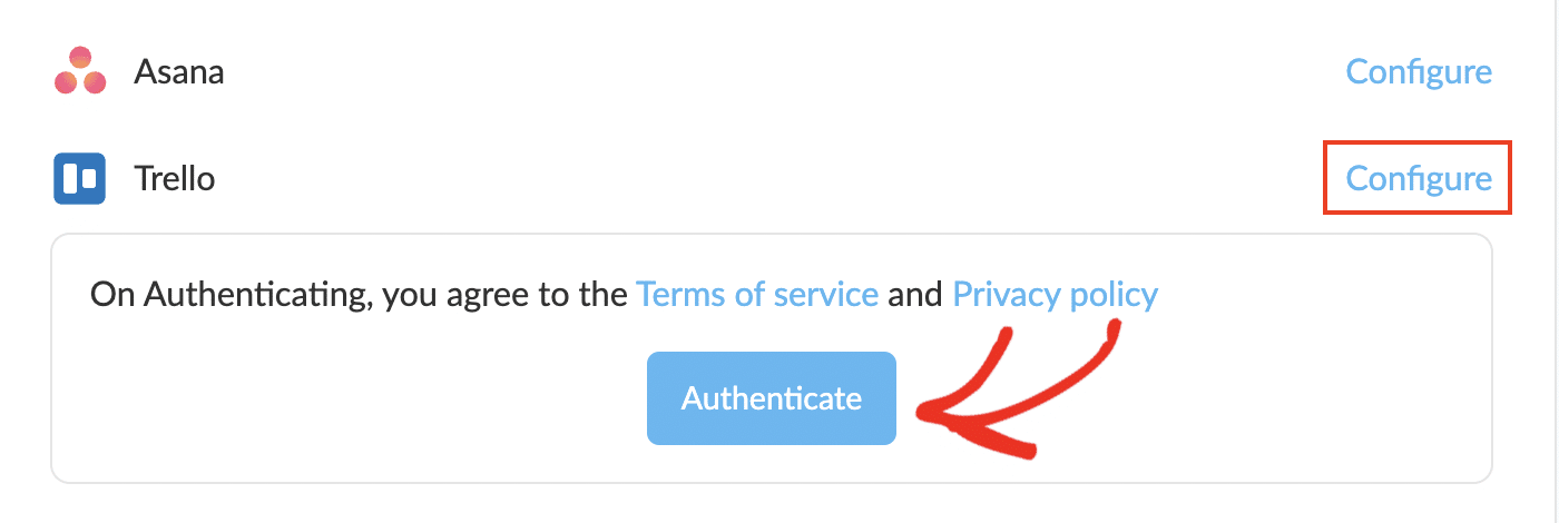 The specific functionality of the integration depends on the app. For example, if you connect TeamInbox to Trello, you can view your Trello projects from within TeamInbox, and open, view, search, add, and edit cards.