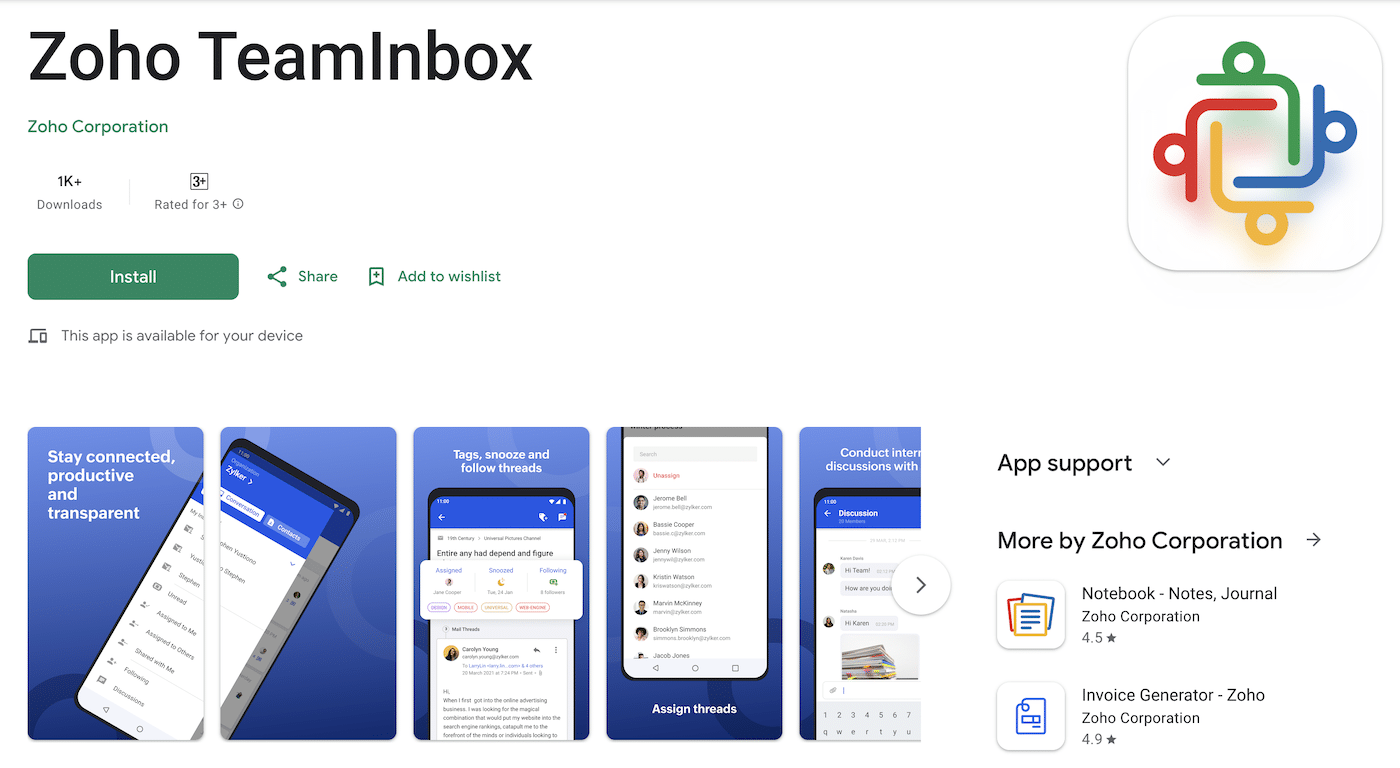 As well as the TeamInbox website, there are also Zoho TeamInbox apps available for iOS and Android.